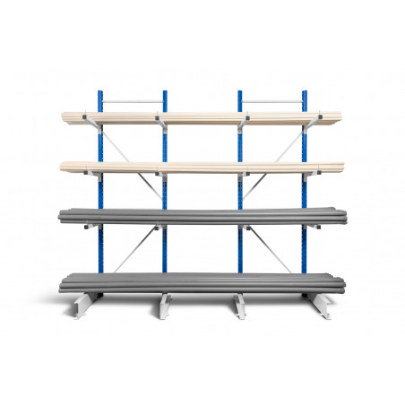 Le rayonnage cantilever est une solution de stockage idéale pour les matériaux longs, lourds ou encombrants. Il se compose de colonnes verticales, de bras en porte-à-faux (cantilever) et de bases pour stabiliser la structure. Son design offre une accessibilité maximale aux articles stockés, tout en optimisant l'espace disponible.