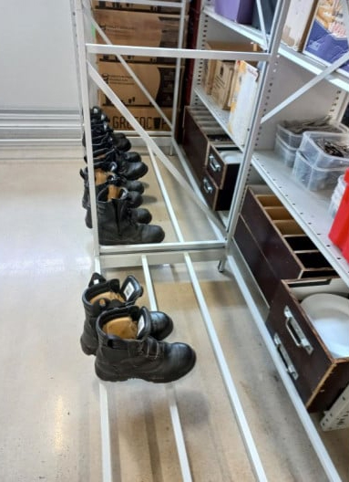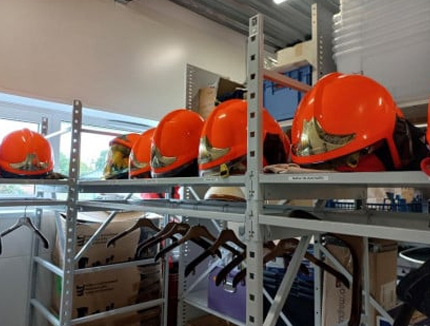Notre client recherchait une solution pratique pour ranger des manteaux, casques et chaussures pour les pompiers de sa région. Nous lui avons proposer de mixer 2 de nos rayonnages pour répondre à son besoin.