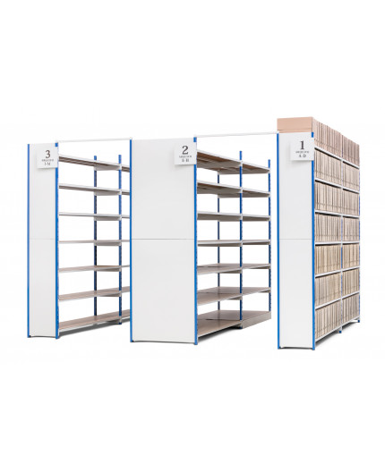 Le rayonnage pour boîtes d’archives est conçu pour le stockage et l'organisation de vos documents importants. Il permet de préserver la qualité des documents et offre une facilité d'accès pour une récupération rapide. Le rayonnage pour archives est essentiel pour les salles d’archives municipales, les entreprises et les organisations qui gèrent une grande quantité de documents.