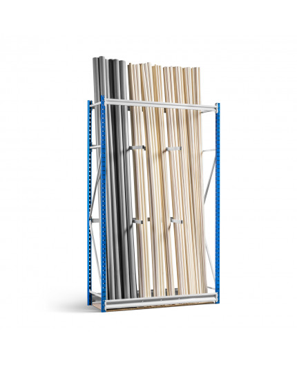 Pour le stockage de charges longues afin de réduire l’encombrement au sol, il est préférable d’opter pour le rayonnage vertical. Conçu pour stocker verticalement des charges longues, le rayonnage pour stockage vertical offre une optimisation de votre espace de stockage. Une butée au sol empêche le glissement des tubes, des tasseaux, des lames de bois, des bastaings et autres objets de grande taille. Doté d'un socle métallique le rangement est pensé pour être intuitif et sécurisé.