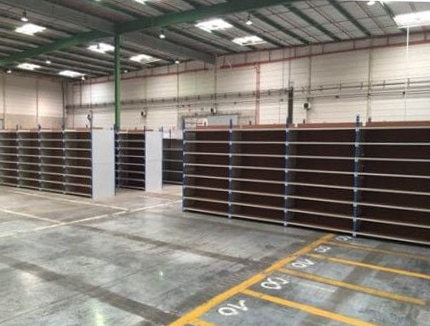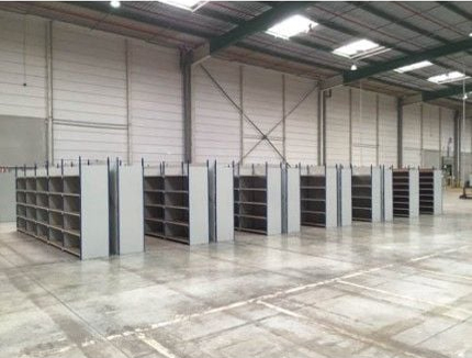 Réalisation d’une aire de stockage de pièces détachées dans un local de réparation.